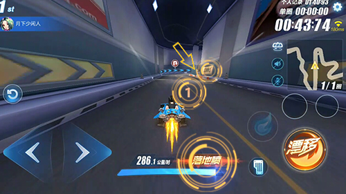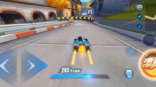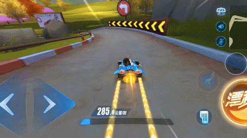 这处近道前方的直道上有一个高低地形,而大家又习惯于在直道释放氮气,所以在近道前赛车的车速非常高,很容易错过近道或者对漂移点的判断出现偏差。