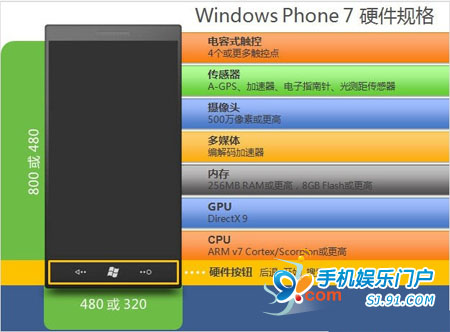 这是Windows Phone 7的标准配置图,各位看官注意了,这还只是标准配置,更高的配置就请大家尽情想象下吧。