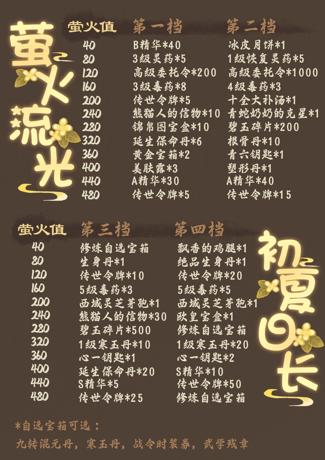 萤火值】掉落: