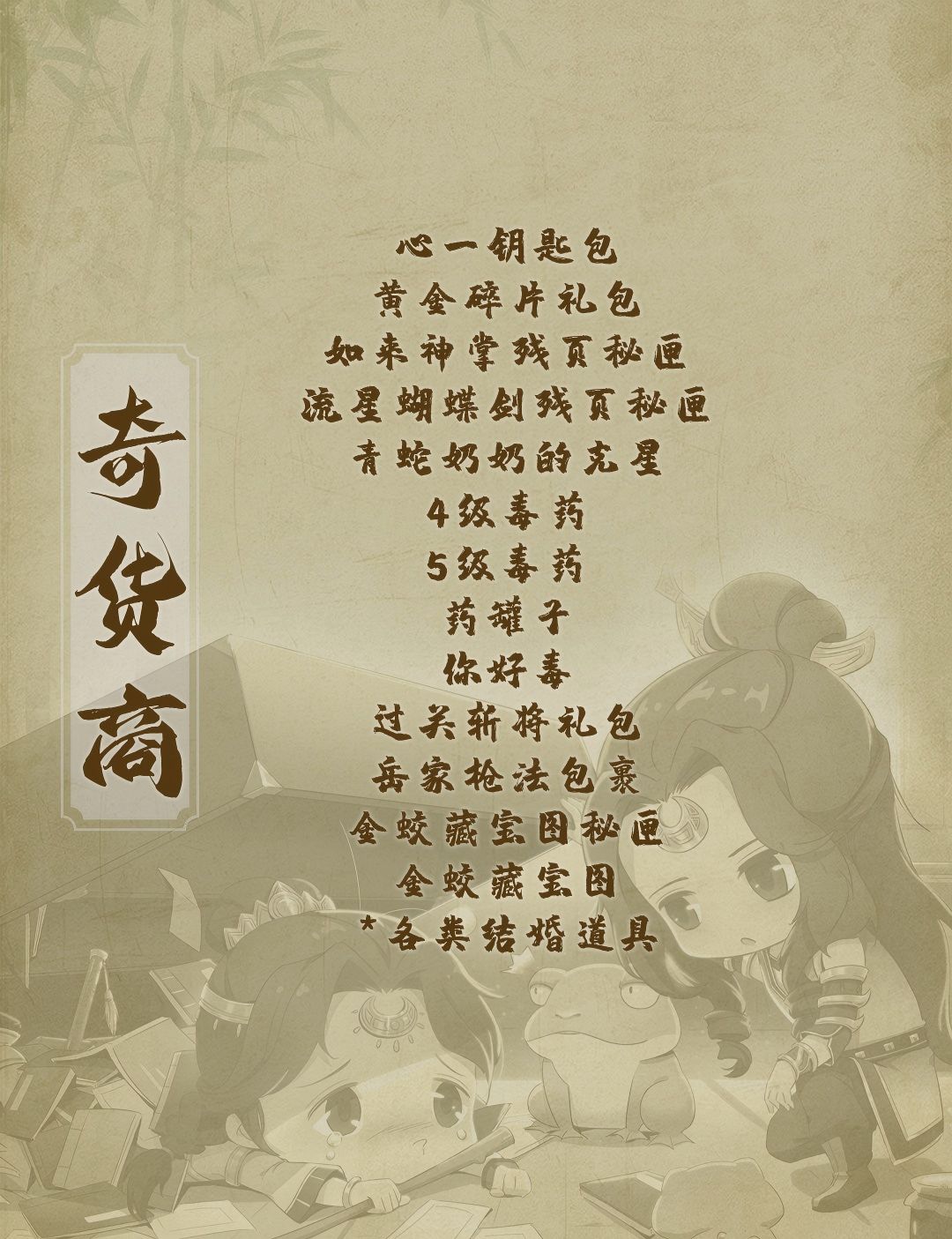 奇货商处引进了不少好东西,有需要的少侠可前往购买。
