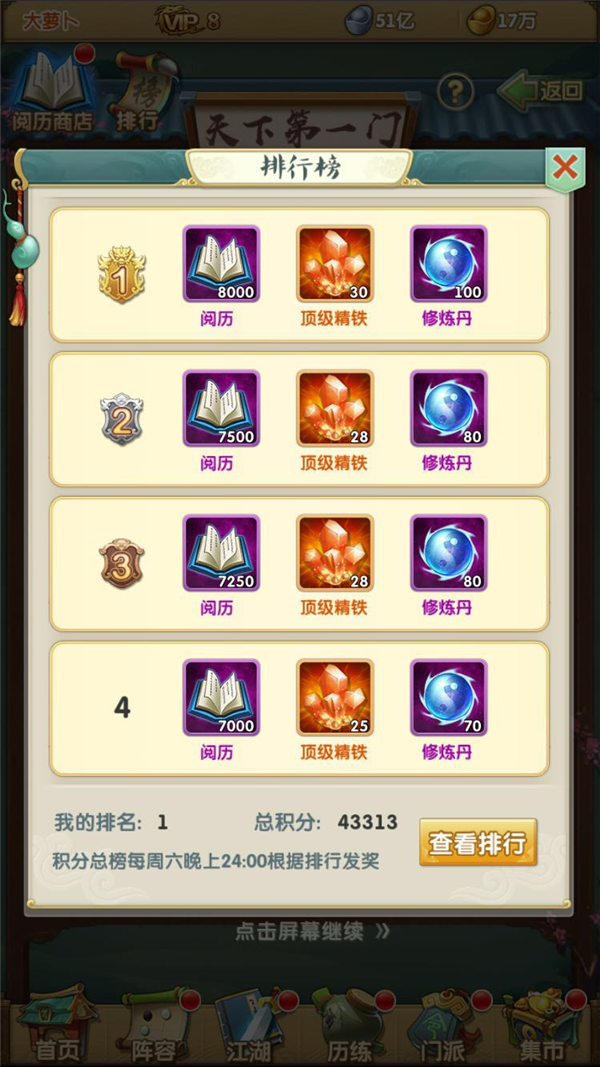 名门周榜奖励: