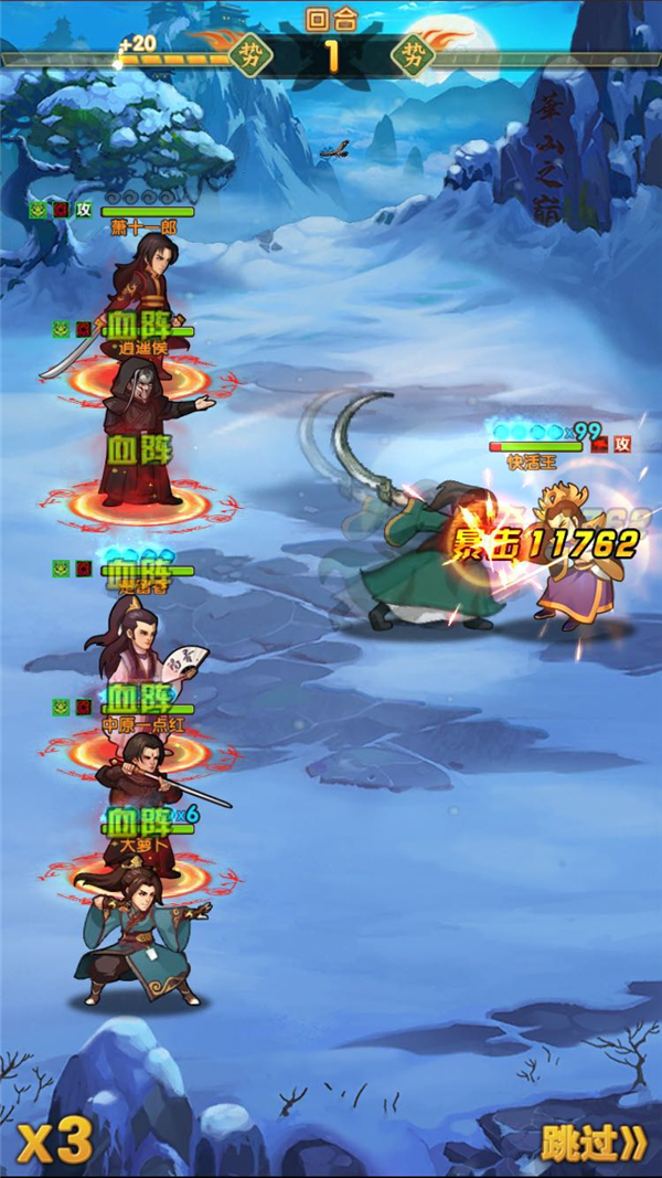 在多索道硬闯的过程中,存活下来的弟子,可与掌门一起挑战快活王,所有掌门有6次免费硬闯的机会,免费消耗掉之后可花费15元宝无限制增加闯关次数,快活王免疫一切控制及特效