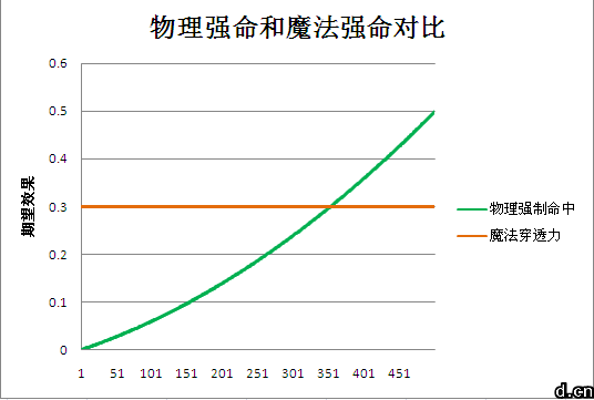 可以看出魔法穿透力的效果期望是比物理强命要低的!所以魔法穿透力明显比物理强命要弱一点。