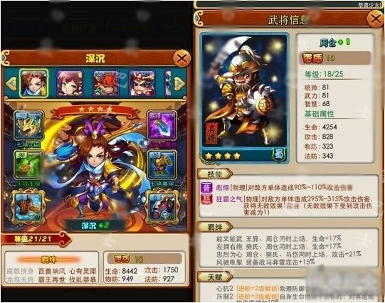 武将天赋:当强化到一定等级后,武将会解锁自身的特有天赋技能,增加大量特有属性,每一名武将拥有的天赋都不尽相同。当所有武将所有天赋能力解锁后,武将的特点会最大化发挥出来。