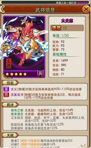 吴国江东支柱的羁绊,和五虎 一样。但他能进入前五,却并非因为吴国。其羁绊混搭,并且自身攻击后排设定,和不错的属性。使得他不仅仅是一个给力的小伙伴,而且 也是个上阵的好手。