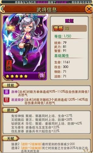 12资质最有用的武将不知道可否这么形容她。魏国称霸的版本之下,魏国众将都有不俗的上阵实力。但一个12资质的女士却能异军突起,常能看到在阵上她的身影。不仅如此郭嘉和华佗的羁绊也是她成为突出小伙伴的原因。因魏国13资质强力武将太多, 所以她也便成为最有用的小伙伴,荣登小伙伴榜首。