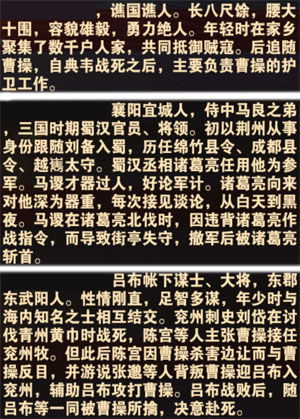 根据下图游戏内对武将的简介,回答对应武将的名称。