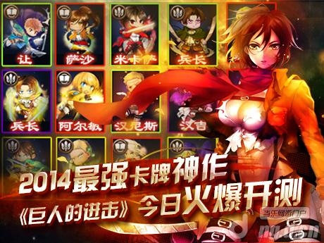 根据13年度最火爆漫画题材改编的《巨人的进击》,以卡牌收集养成、副本战斗为核心内容,采用卡牌战斗的经典方式,真实还原动漫中的人物角色和剧情。玩家们将回到被巨人控制的人类世界,与艾伦、阿明、三笠等小伙伴,大战铠甲巨人,抵抗凶残巨人的进攻,成为超级英雄 。