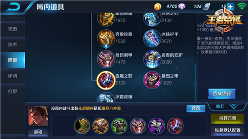 出装分析:配合吕布的被动和技能百分比的回血效果,我们所需要做的是尽可能的提高吕布的生存能力。强大的真实伤害无需配上更多的攻击装备叠加吕布的输出能力。