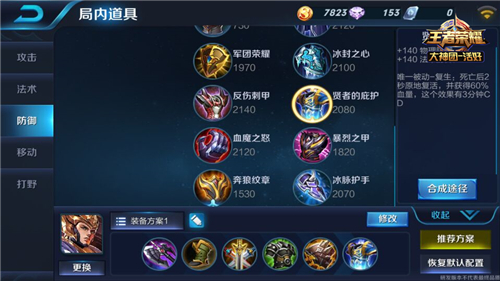 【贤者的庇护】属性:+140物理防御 +140法术防御 唯一被动-复生:死亡后2秒原地复活,并获得60%血量,这个效果有3分钟CD
