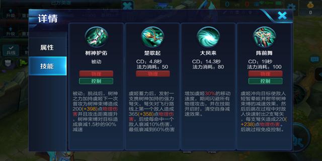 解析:免疫所有物理攻击并瞬间增加移动速度,同时可以消除自身的减速效果,随等级提升增加移速也会提升。此技能在敌方物理英雄突击虞姬时释放或在追击敌人时释放,平常不要随便释放此技能。