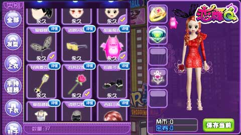 点击进入商城后,左边有人物图像的那块就是显示你选择了商城装扮服饰后的形象,如果想买异性的服装也可以按男女性别选择进行角色切换。下面的M币和金券则是你目前拥有的货币数值,恢复和保存形象则是清除角色服饰装扮和保存造型的选项。