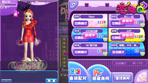 在房间下方还有几个选项,其中自动匹配则是在点选后系统自动帮助玩家进行房间匹配;创建房间则是玩家自己开启房间,决定游戏模式以及人数,或邀请好友进行游戏的必备功能;查找房间则是让玩家在众多的房间中,寻找到自己需要进入的房间,譬如:公会聚会房间、又或是与妹子约会的房间等等。