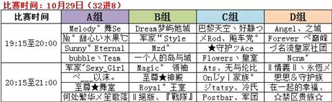 注意:各组舞团团长请在比赛前联系对应小组的负责GMQQ,如赛前未及时与对应负责GM取得联系,导致后续比赛延误的,官方将不做处理,玩家自行承担。舞团崛起官方指导群:252715842。(加入请注明乐号)