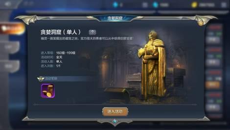 点击游戏界面右上角的“活动”按钮,点击“贪婪洞窟”位置的“参加”按钮,即可打开贪婪洞窟界面。