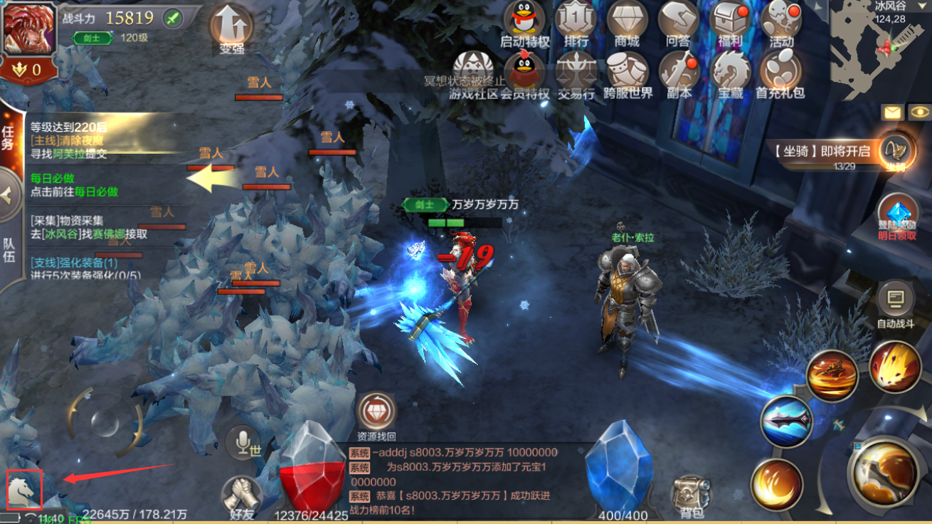 2.可通过主界面左下角的坐骑按钮进行手动上下坐骑