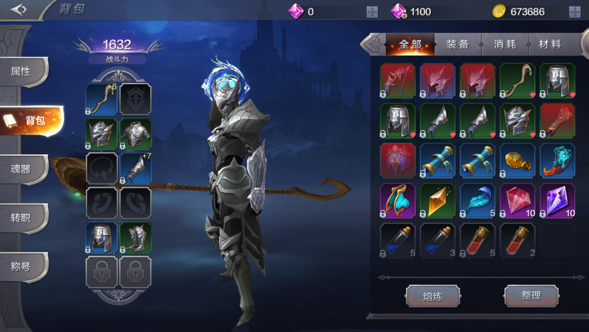 ②装备部位:游戏中角色拥有十个可装备栏,分别是“单手武器、副手武器、项链、戒指(左)、戒指(右)、头盔、铠甲、护手、护腿、鞋子“,其中如果角色使用的是双手武器,那么不可装备副手武器;