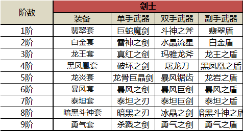 剑士:单手剑+副手盾/单手剑+单手剑/双手武器;
