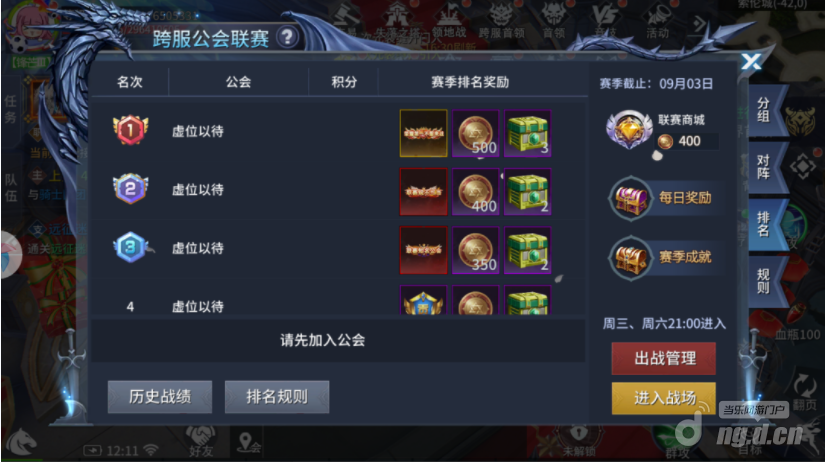 活动时间:每周三、六,晚上21:00,一周为一赛季。