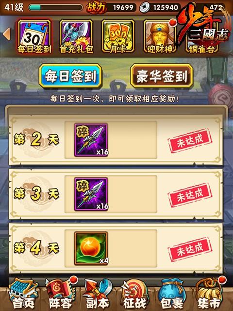 点击“副本”按钮则可以让您快速进入副本界面,去挑战副本,其中包括“主线副本”、“名将副本”和“日常副本”!在您不知道该干点嘛的时候,点这里永远是对的!