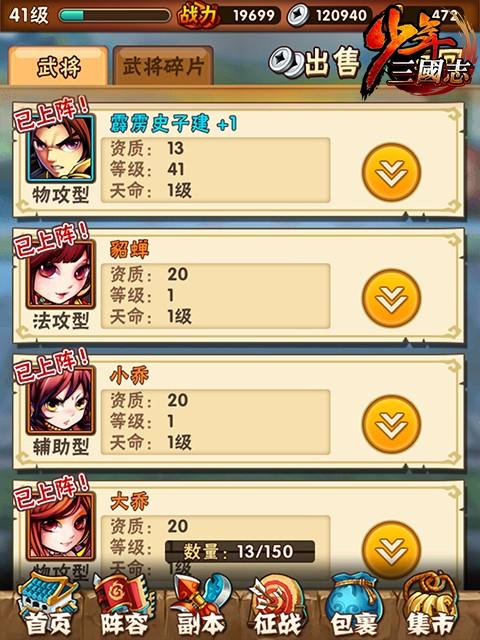 主界面下方的“武将”按钮,点击后可查看现有所有武将和武将碎片的信息。