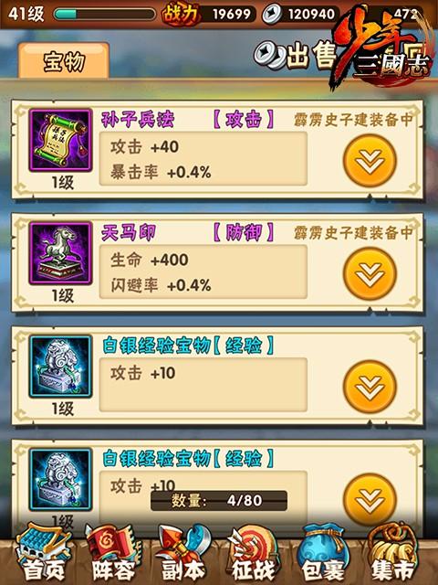 主界面下方的“宝物”按钮,点击后可查看现有所有宝物信息。