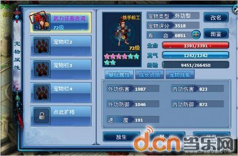 再说说关于古墓选宝宝方面,宝宝有内功和外功型,作为一个内功输出肯定选互补的外功型宝宝,而且古墓的攻击分散正需要一个宝宝集火攻击,尤其对付加血的侠客,真是一针见血,推荐技能背水一击,强击,还有加暴击,加速度的技能。