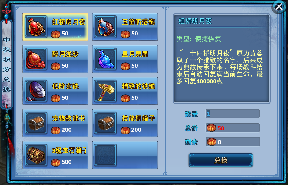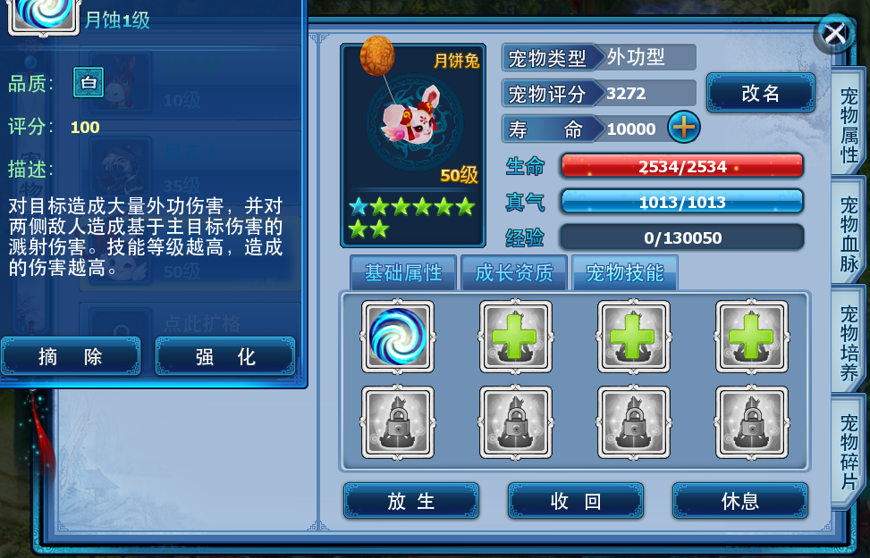 活动期间限时购买:月饼兔宝宝袋、高级宠物秘籍、血脉精华、宠物技能书