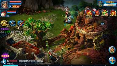 就在楼主学会飞龙在天的时候,有两个梦魇邪兽来寻找麻烦,楼主只好与说书人一起对付他们。这是楼主下山之后第一次打群架,学会了使用技能和自动打怪功能。