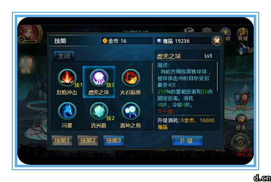 虚无之球:瞬发直线攻击技能向前方发射一颗黑色能量球,对敌人造成伤害。这个技能起手快,伤害其实还可以,看你怎么用。这个技能要是打屏幕中间的怪一般就直接穿过去了,伤害就很少。但是如果将怪聚到屏幕边缘,再使用这个技能,那么就会造成更多段数的伤害。因为在这个能量球打到屏幕边缘时,不会立刻消失,而是旋转一段时间后才会消失,这段时间依然造成伤害。这个技能攻击距离很远,可以用来作为PK时的试探技能。