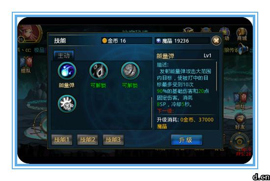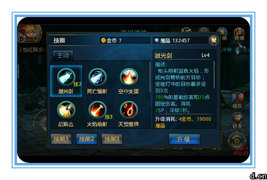 死亡镭射:喷射一道贯穿敌人的镭射光束,攻击一条直线上的敌人。这个技能起手略慢,但是攻击距离长伤害高,作为出的输出技能还是不错的,但是后期几乎用不上了。