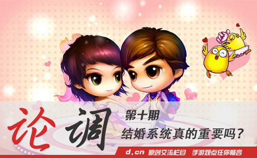 @blue:“结婚”系统是游戏商很简单抓住玩家心里的一种表现,因为只有这样才可能吸引更多的玩家加入去玩,商家才能赚钱,很多结婚系统都需要游戏币或增值道具,而这些就必须要玩家花钱去买了。