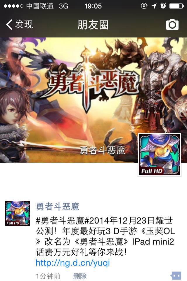 #勇者斗恶魔# 2014年12月23日耀世公测!年度最好玩3 D手游《玉契OL》改名为《勇者斗恶魔》IPad mini2 话费万元好礼等你来战!