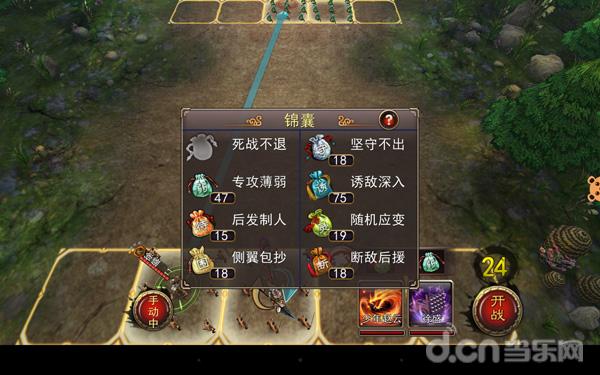 游戏采用战棋类型的游戏玩法,非常讲究策略,玩家在每一次副本中都要注意军师留下的过关锦囊,根据锦囊提示来布阵通关。战斗中每名英雄都有一个技能,采用技能冷却机制,转好CD只需点一下就可以,这也是战斗中唯一手动进行的操作。