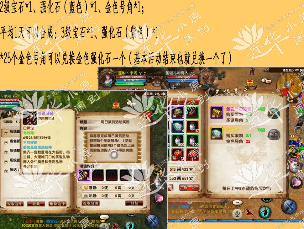 二: 圣诞号角可以在楼兰、大名府、大理门口的NPC兑换"圣诞节日宝箱”每天最多换5个。