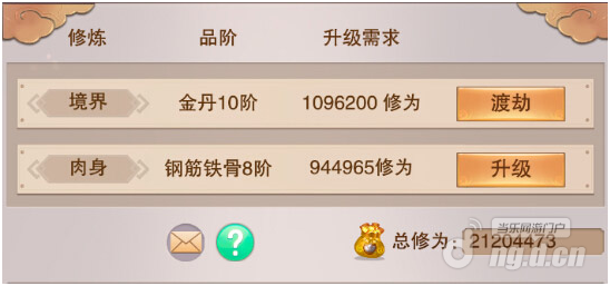 境界之下是肉身,肉身前期不用升级,升级肉身不提高修炼效率,只提高一定的血量和少许防御,前期在修为超出肉身升级修为很多的情况下可以提高几点肉身。肉身境界的作用有二,一个是在够买了肉身成圣决(3W灵石)之后,可以将草药转换为灵液,然后消耗灵石和灵液进行淬体,淬体可以提高修炼效率。同时淬体提高的修炼效率是受到练功房效果加成的,中期比较有用,但是淬体十分消耗草药和灵石,前中期灵石很紧张,所以不会太早进行淬体。肉身的第二个作用是后期在提升修为境界的时候对肉身等级有要求,目前知道的要求是在洞真期晋升散仙期的时候,需要肉身修为到达金身一阶,地仙一阶升到二阶的时候需要达到万象境界,大罗金仙一阶升二阶的时候需要到达仙体境界。这些境界离新手比较远,一般来说,推荐在进入洞真期之后再开始升级肉身境界和淬体到金身一阶。