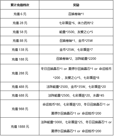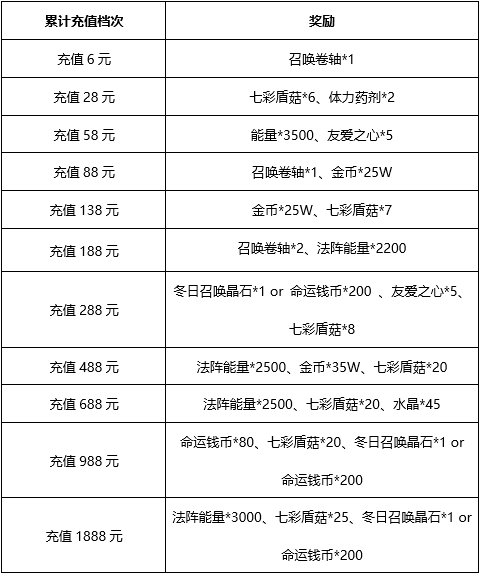 3、活动期间内,首次登录游戏可在邮箱中领取冬日召唤晶石*1,冬日召唤晶石可在冬日特典召唤池中进行一次十连召唤;