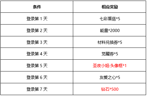 2、12月26日00:00:00~12月28日23:59:59,每日登录游戏,即可在邮箱中领取:150点体力、七彩盾菇*5、庇护之心*4、金币*30000哦~