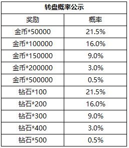 2、跨年幸运转盘可以抽取随机数量的钻石或金币。
