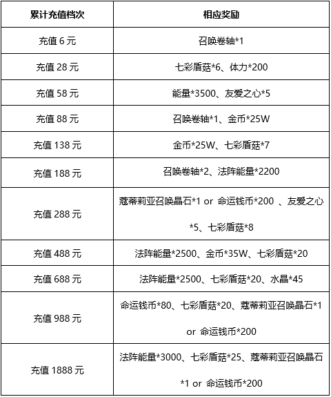 1、每日充值达到相应档次即可拿到相应奖励,活动每日0点重置;