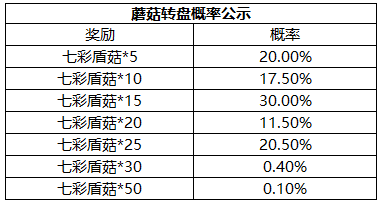 2、蘑菇转盘可以抽取随机数量的七彩盾菇。