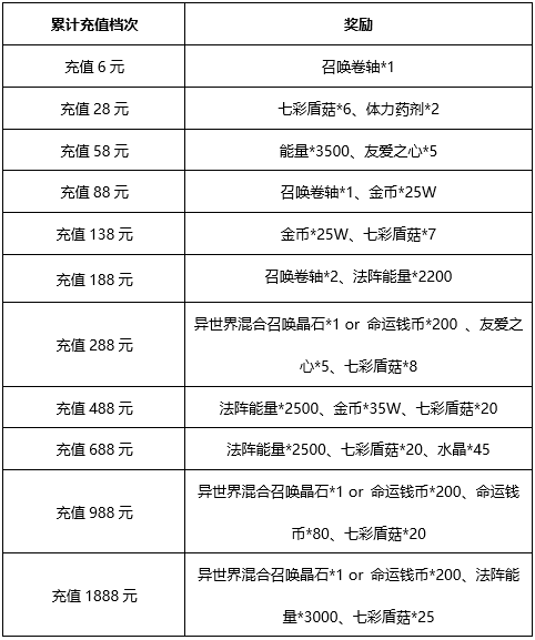 1、活动期间内累计充值达到指定金额,即可获得奖励。